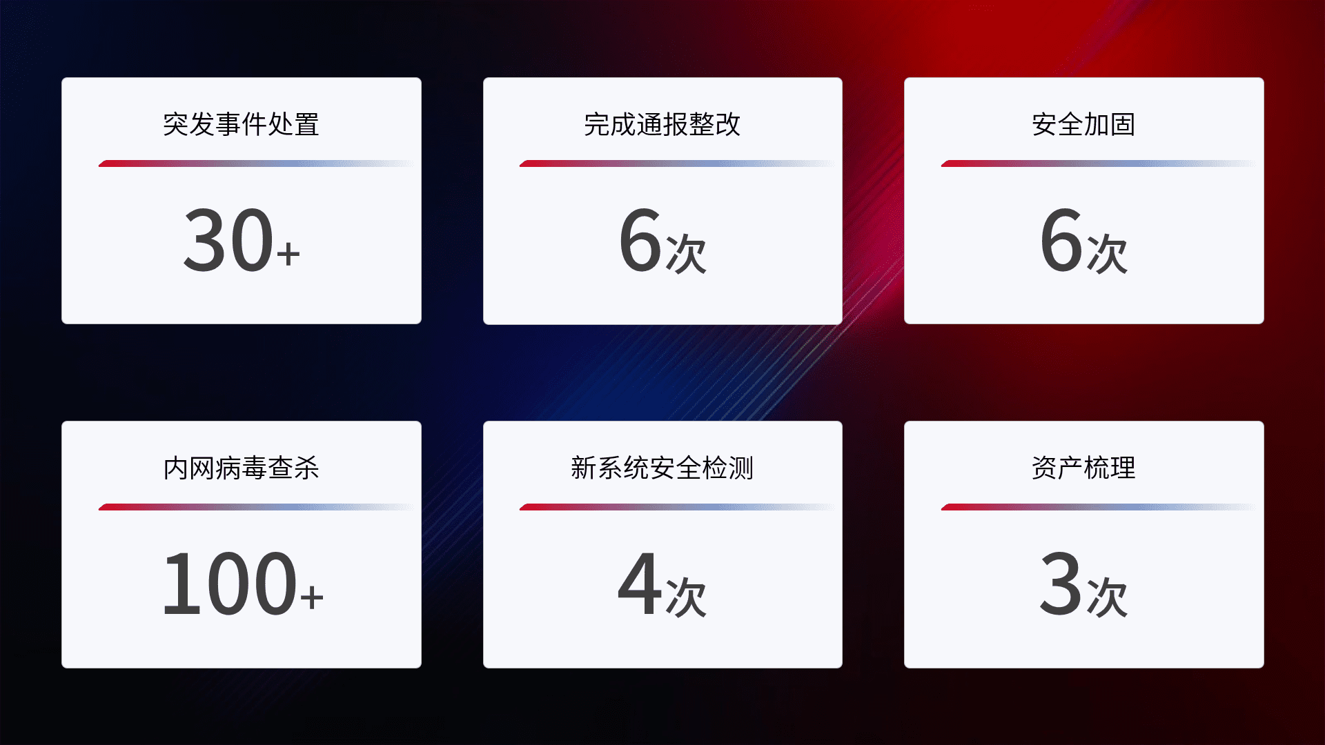 安全水平提升与事件响应:派驻经验丰富的安全工程师,,,提升医院网络安全防护的整体水平;建立突发网络安全事件的处置流程,,,,提高响应速度和处置能力。。。。